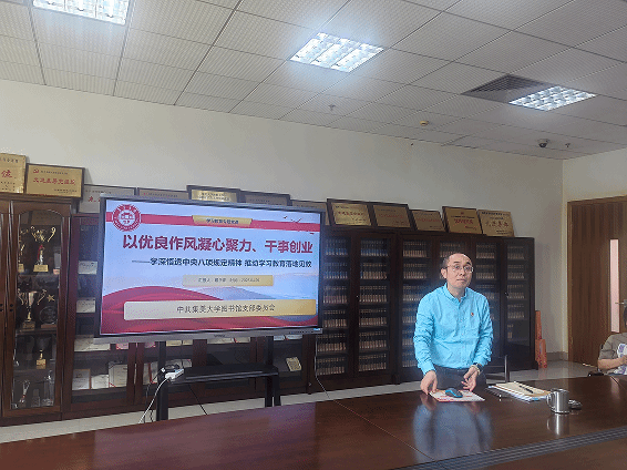 4月29日下午,图书馆党支部书记戴乐阳馆长为全体党员上了一堂以《以优良作风凝心聚力、干事创业》——学深悟透中央八项规定精神推动学习教育落地见效为题的党课。此次党课旨在强化党员干部作风建设,推动全面从严治党向纵深发展。