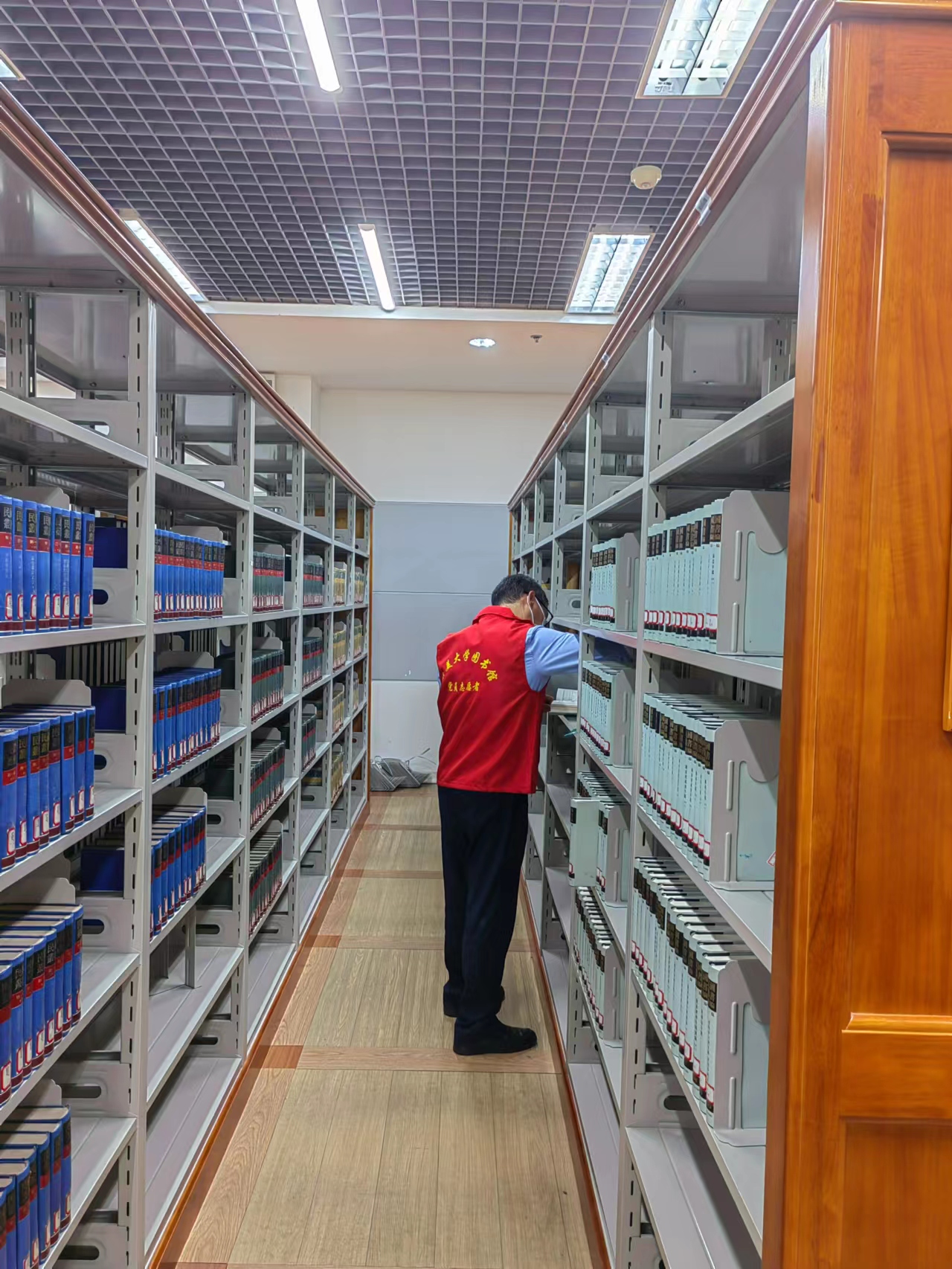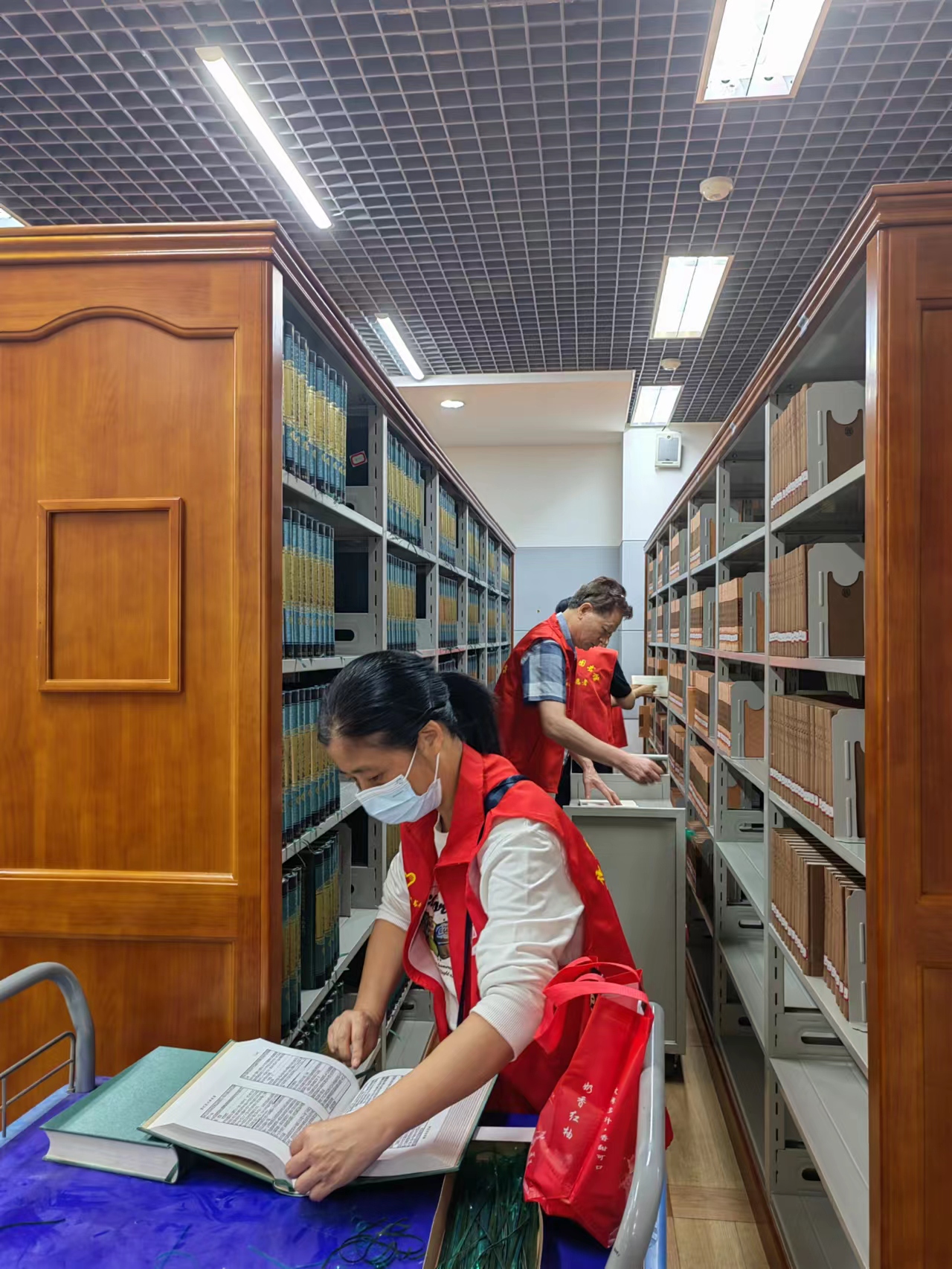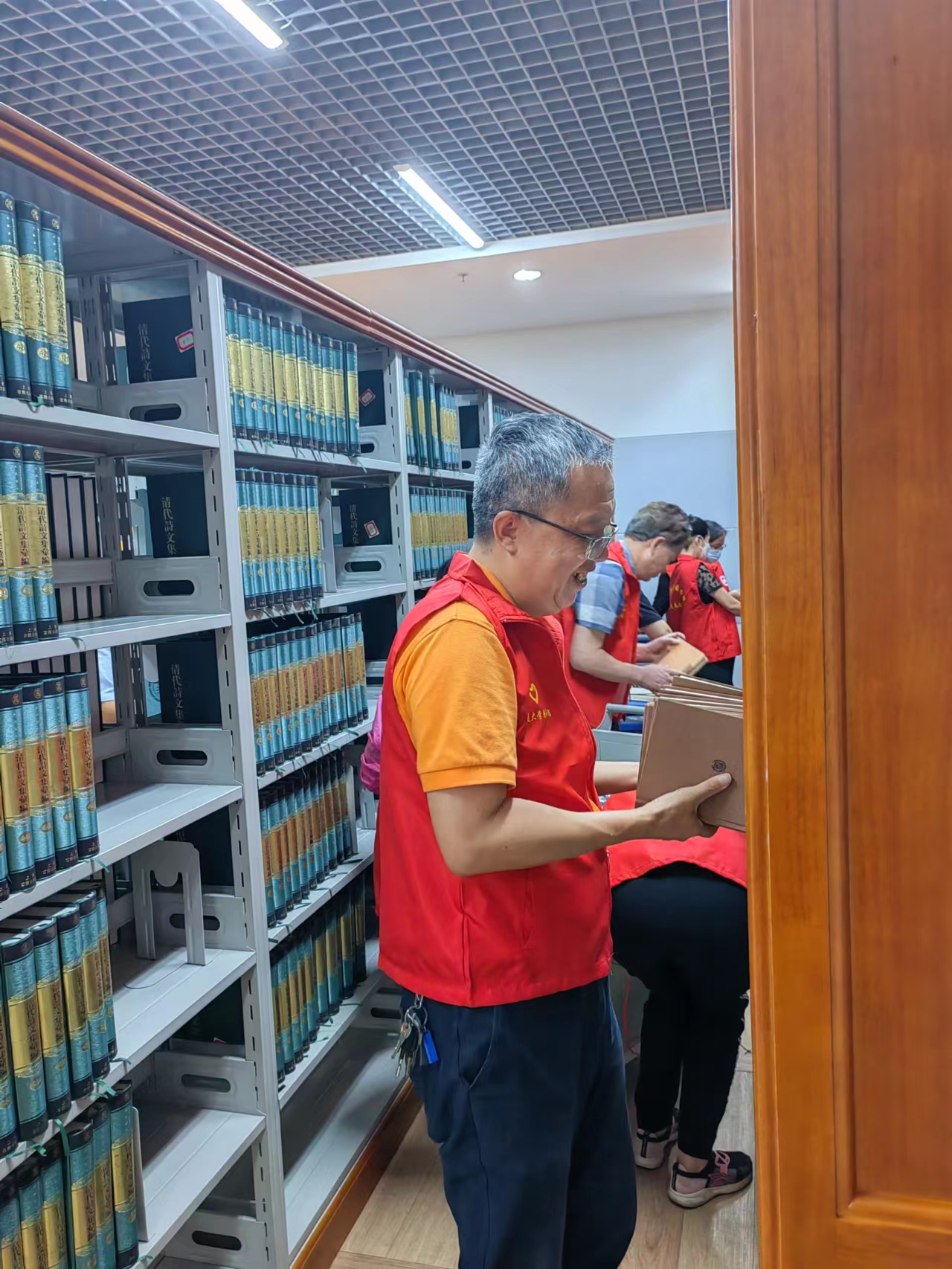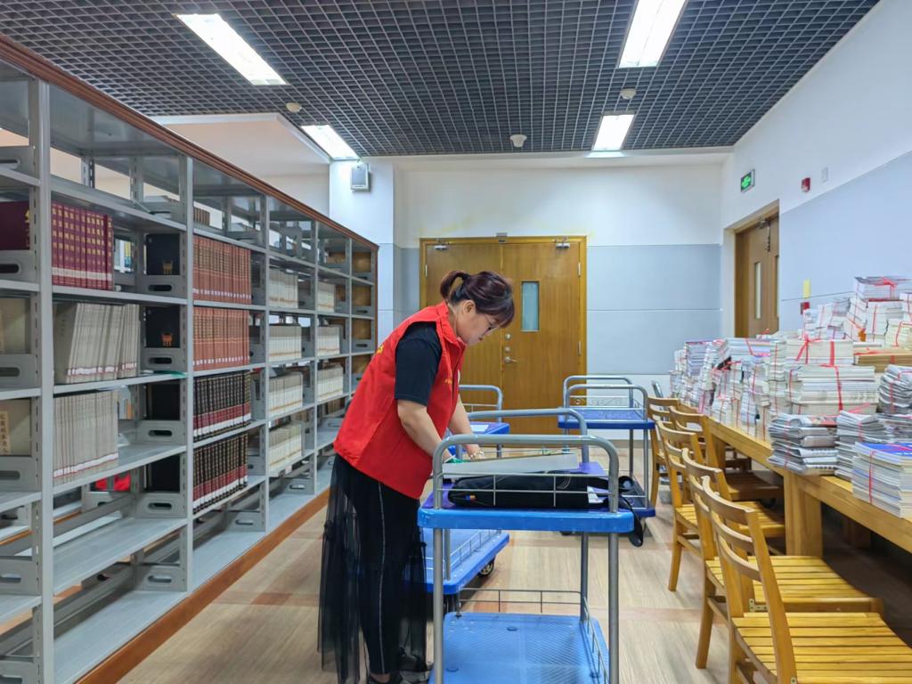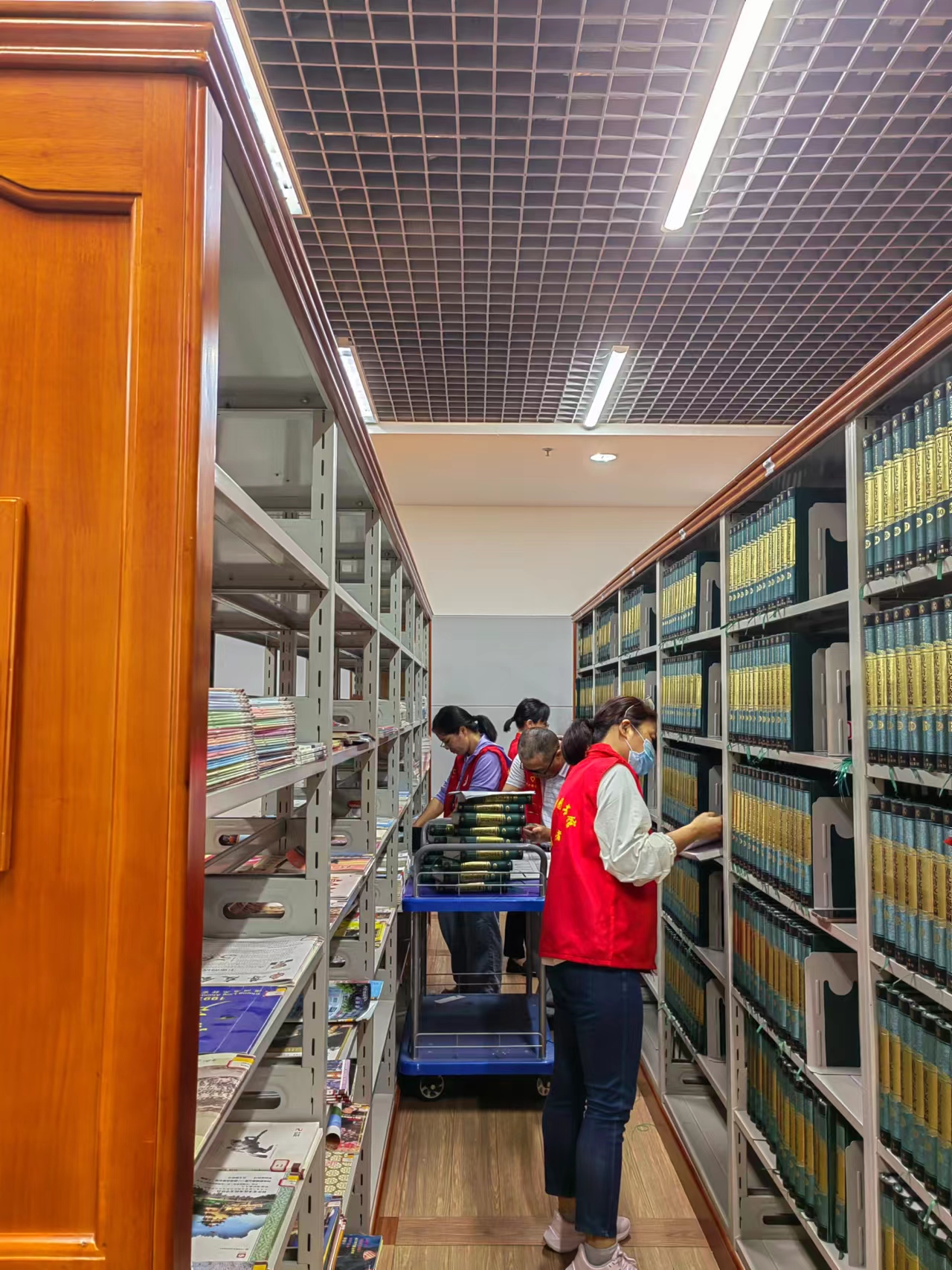【党员当先锋,为民办实事】图书馆党员在陈延奎图书馆二楼华人华侨资料中心 整理书籍,摆放磁条