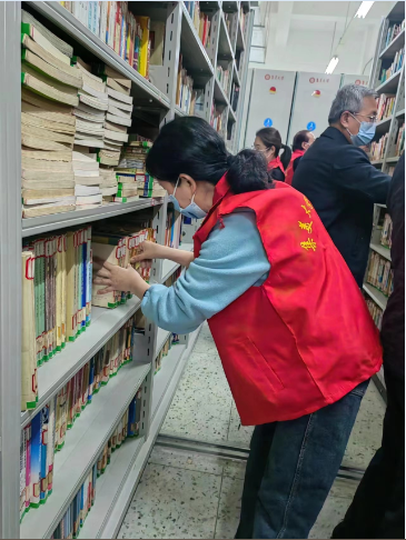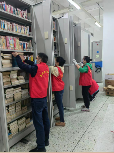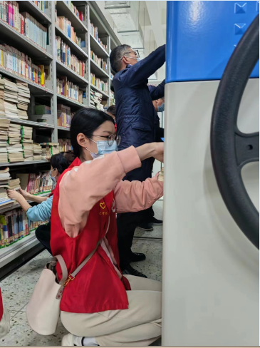 活动中,全体党员分工明确,共同协作,对图书馆密集库部分书架进行了整理,使得密集库有限空间得到了更好利用,确保更多的书籍能上架。